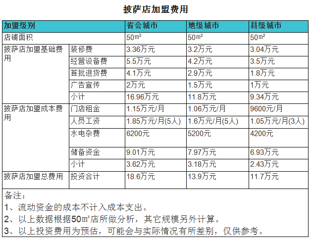 開家披薩店投資大概多少錢?縣級城市成本只要11萬