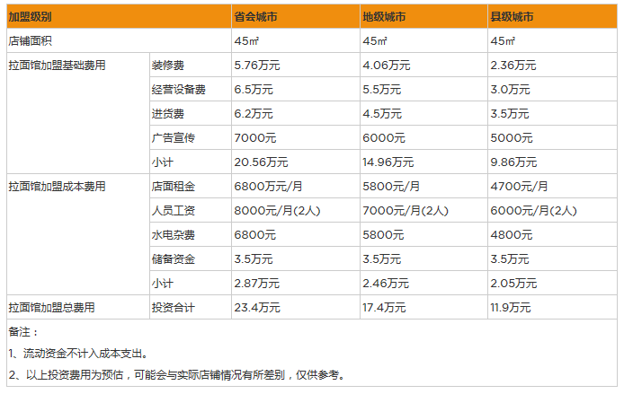 開家拉面館投資一般需要多少錢?45㎡投資12萬元起