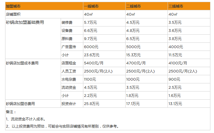 最后開一家砂鍋店總預(yù)算大概在13萬元左右。