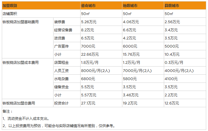開家鐵板燒店投資一般需要多少錢?50㎡最少投資12萬元起