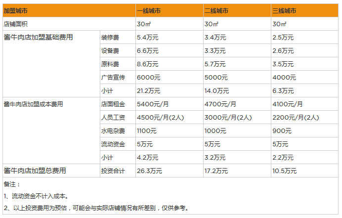 開家醬牛肉店投資一般需要多少錢?30㎡投資10萬,詳情數據分析