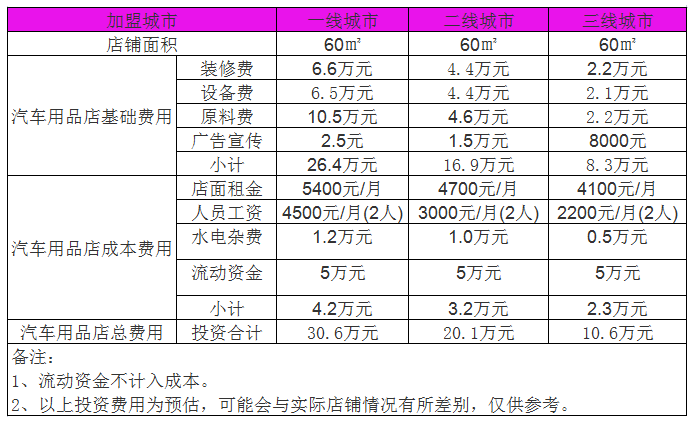 開家汽車用品店投資一般需要多少錢?60㎡店投資10萬