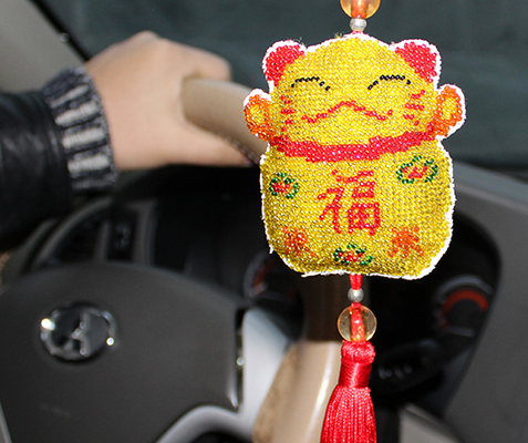 (4)安全:車內飾品不得有礙駕駛員的安全行車或乘員的安全,如車內頂部吊物不宜吊掛過長、過大、過重,后擋風玻璃上的飾物不要影響倒車視線等。