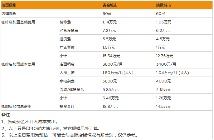 開家咖啡店投資大概多少錢?八項成本投資18.8萬元
