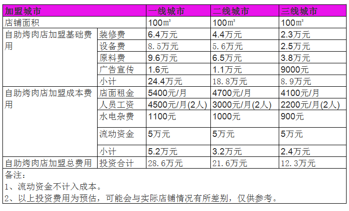 開(kāi)家自助烤肉店投資大概多少錢(qián)?100㎡成本預(yù)算花費(fèi)11萬(wàn)元