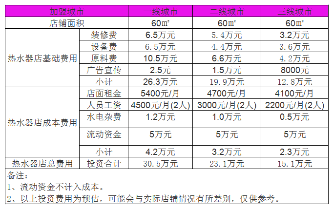 開家熱水器店投資一般需要多少錢?60㎡店鋪投資15萬元